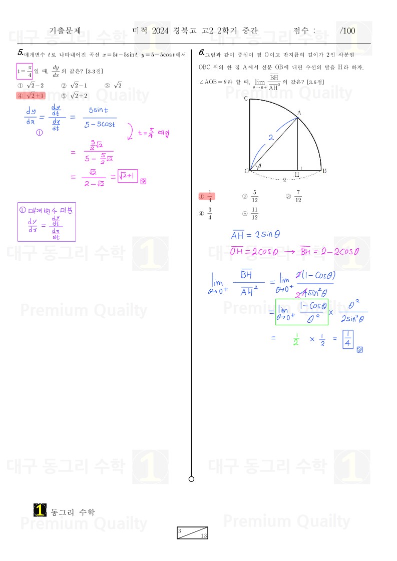 2024년 경북고 2-2 중간 미적
