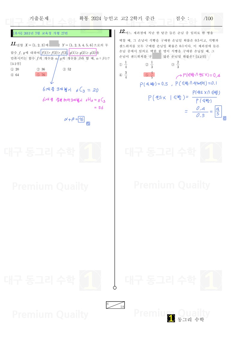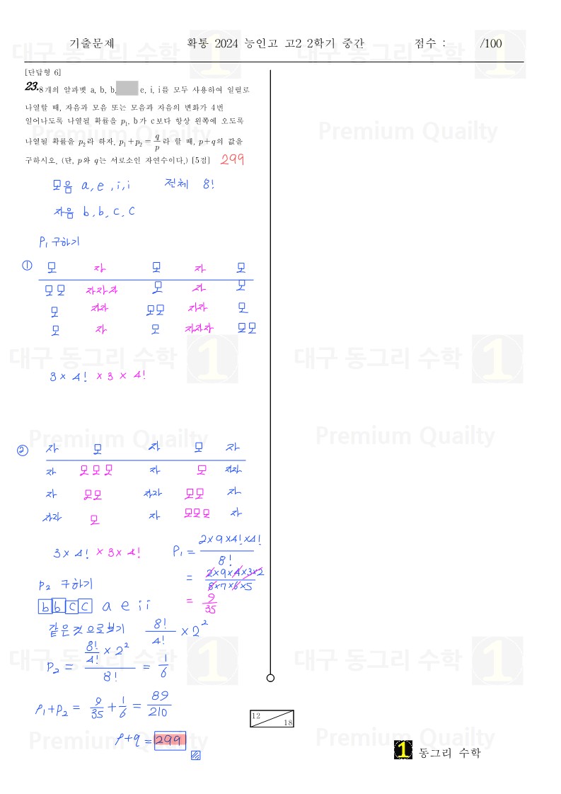 2024년 능인고 2-2 중간 확통이동권강사 손풀이 |