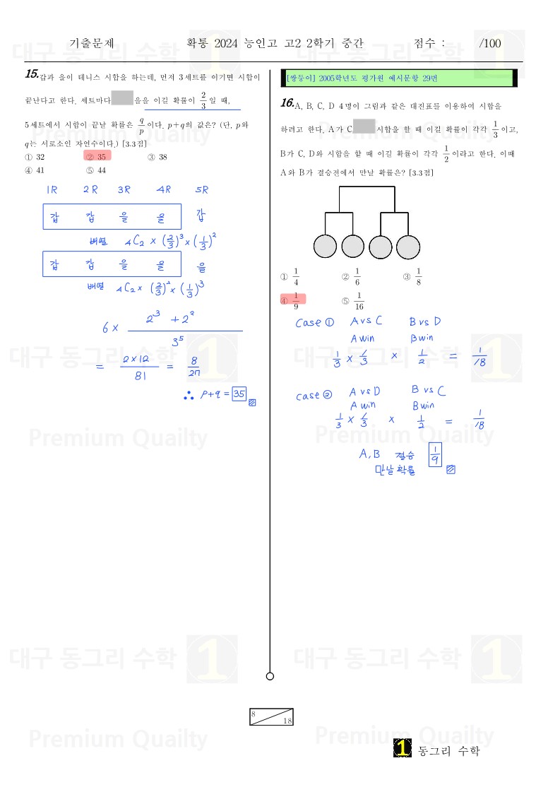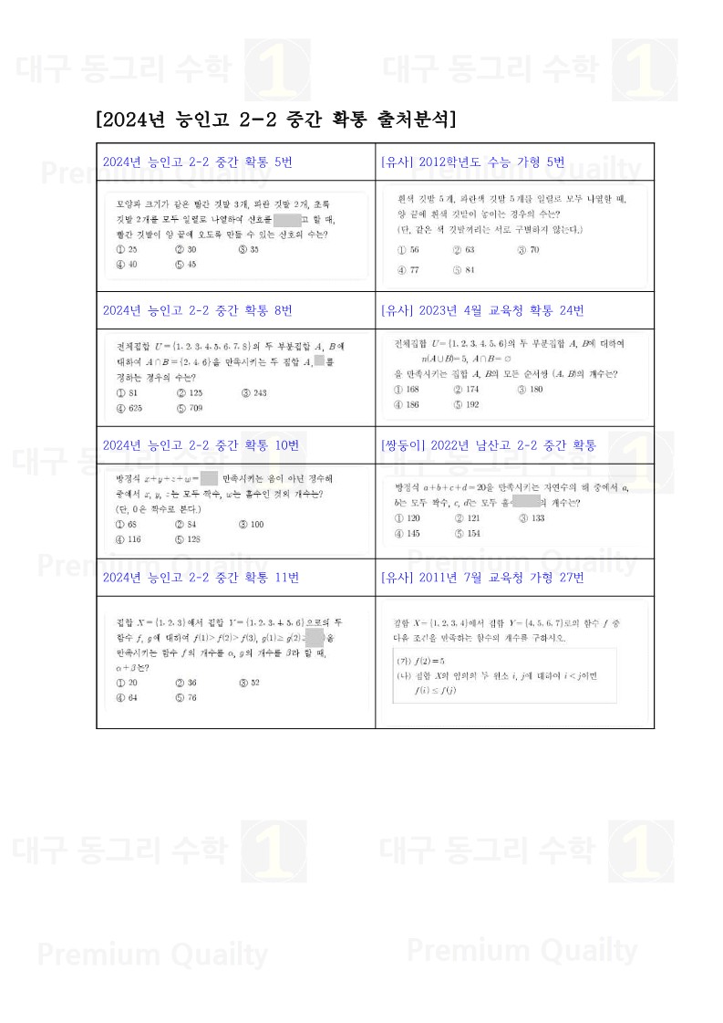 2024년 능인고 2-2 중간고사 확통출처분석 |