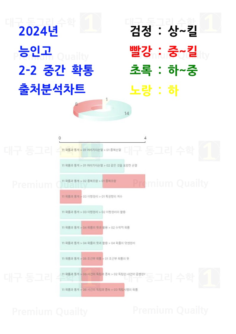 2024년 능인고 2-2 중간 확통중단원 및 난이도 분석차트 |