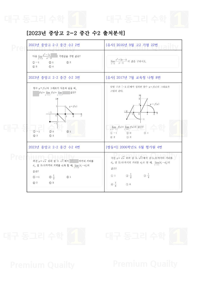 안녕하세요 대구 동그리 수학 이동권 강사입니다.대구 수성구 중앙고2023년 2-2 중간고사 수2기출 분석 및 손풀이 내용입니다. |