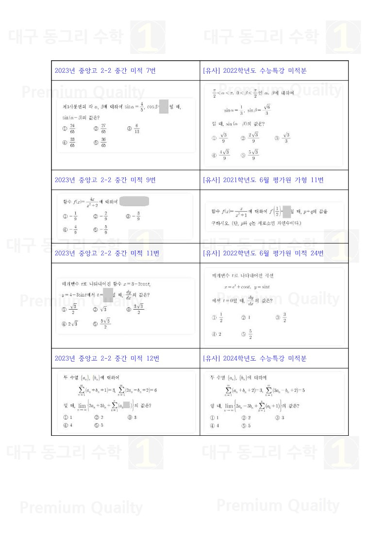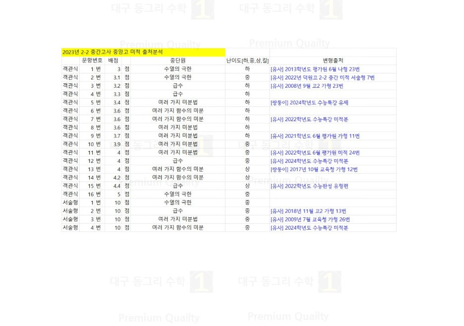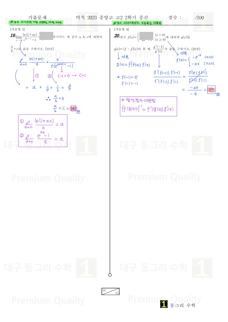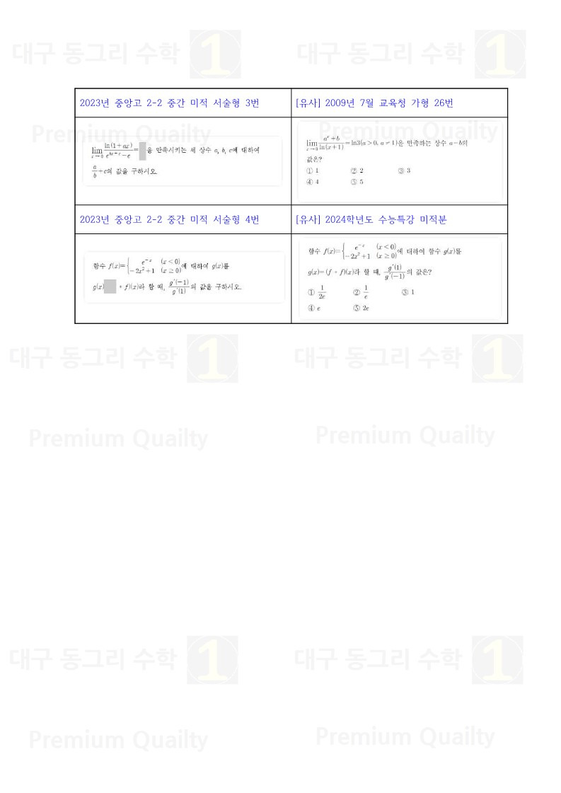 안녕하세요 대구 동그리 수학 이동권 강사입니다.대구 수성구 중앙고2023년 2-2 중간고사 미적분기출 분석 및 손풀이 내용입니다. |