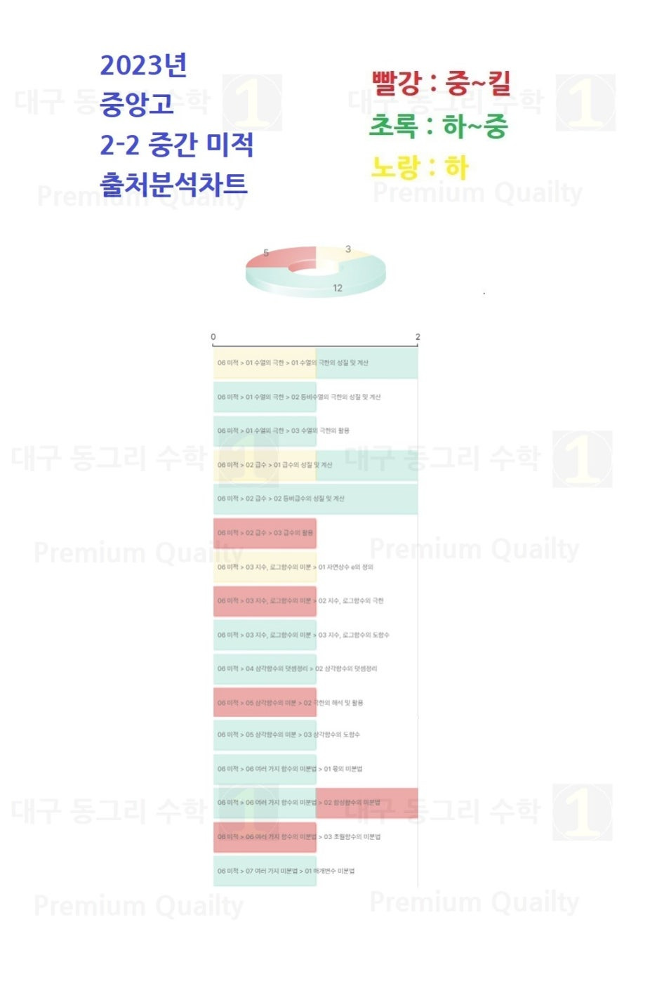 2023년 중앙고 2-2 중간 미적분중단원 및 난이도 분석차트 |