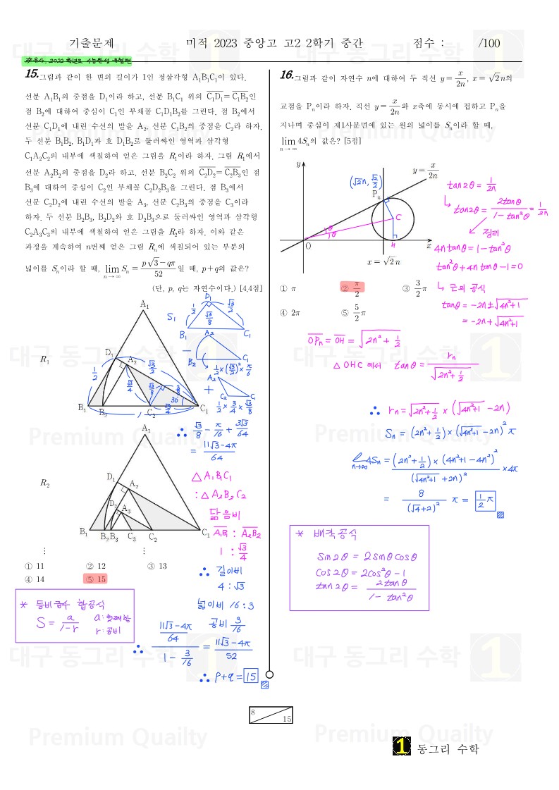 이상으로 2023년 중앙고2-2 중간고사 미적분기출분석을 마칩니다.조금이나마 저의 도움으로학생들의 공부에도움이 되었으면 좋겠습니다.긴 글 읽어주셔서 감사합니다. |