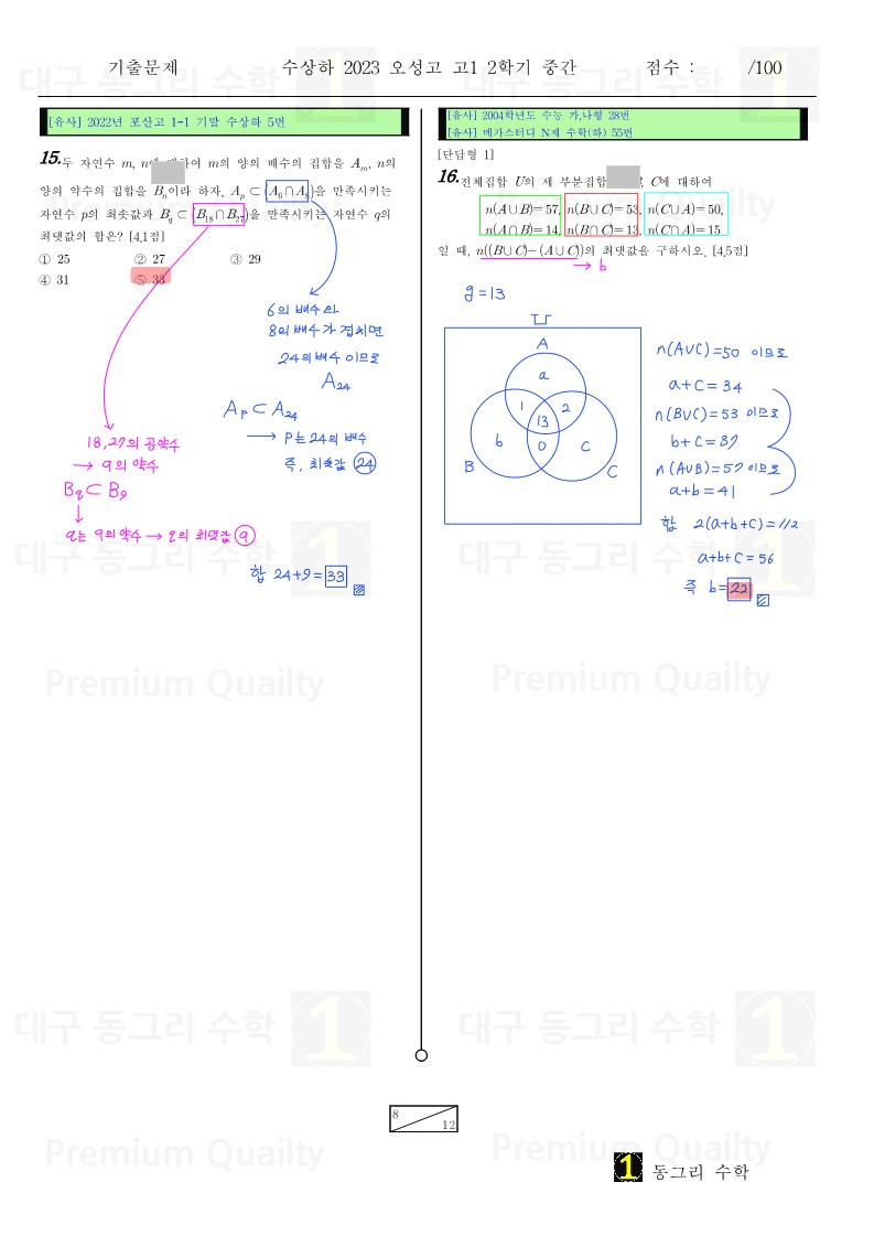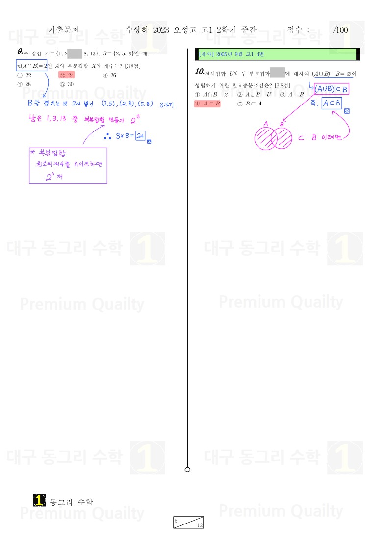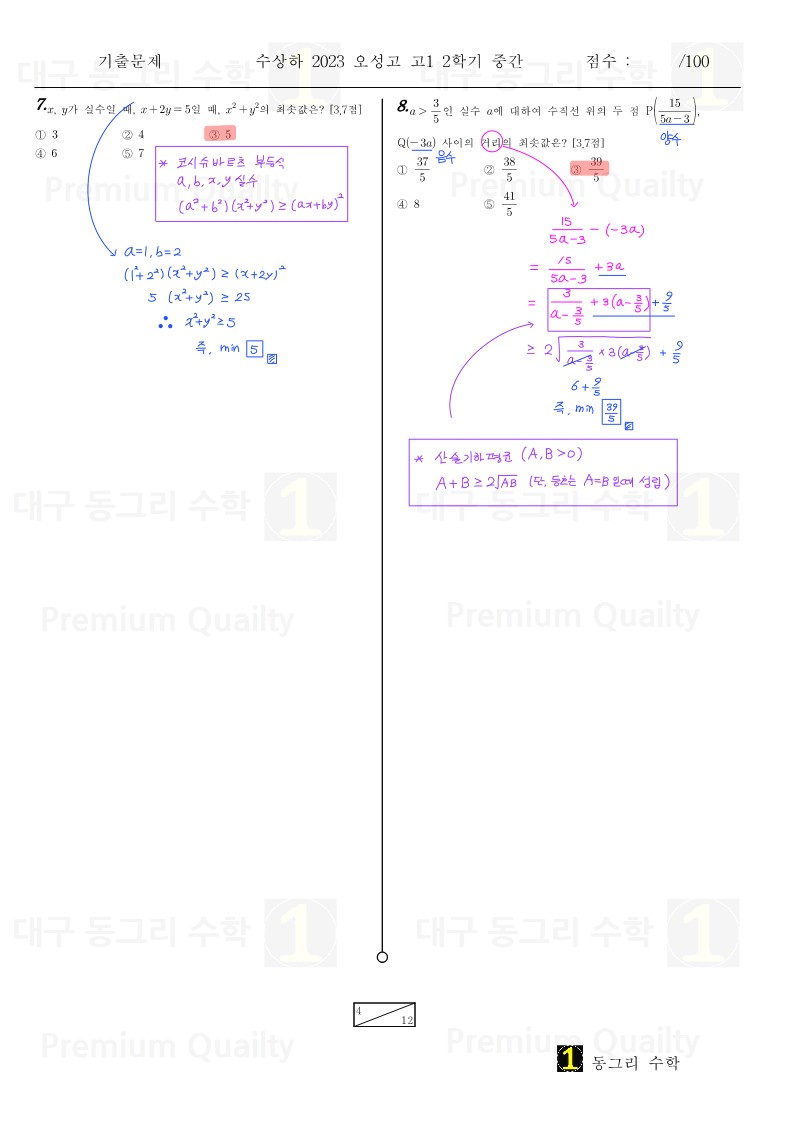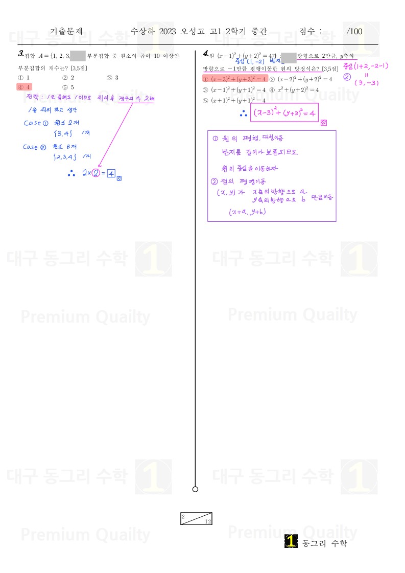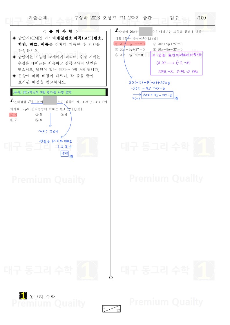 안녕하세요 대구 동그리 수학 이동권 강사입니다.대구 수성구 오성고2023년 1-2 중간고사 수상하기출 분석 및 손풀이 내용입니다. |